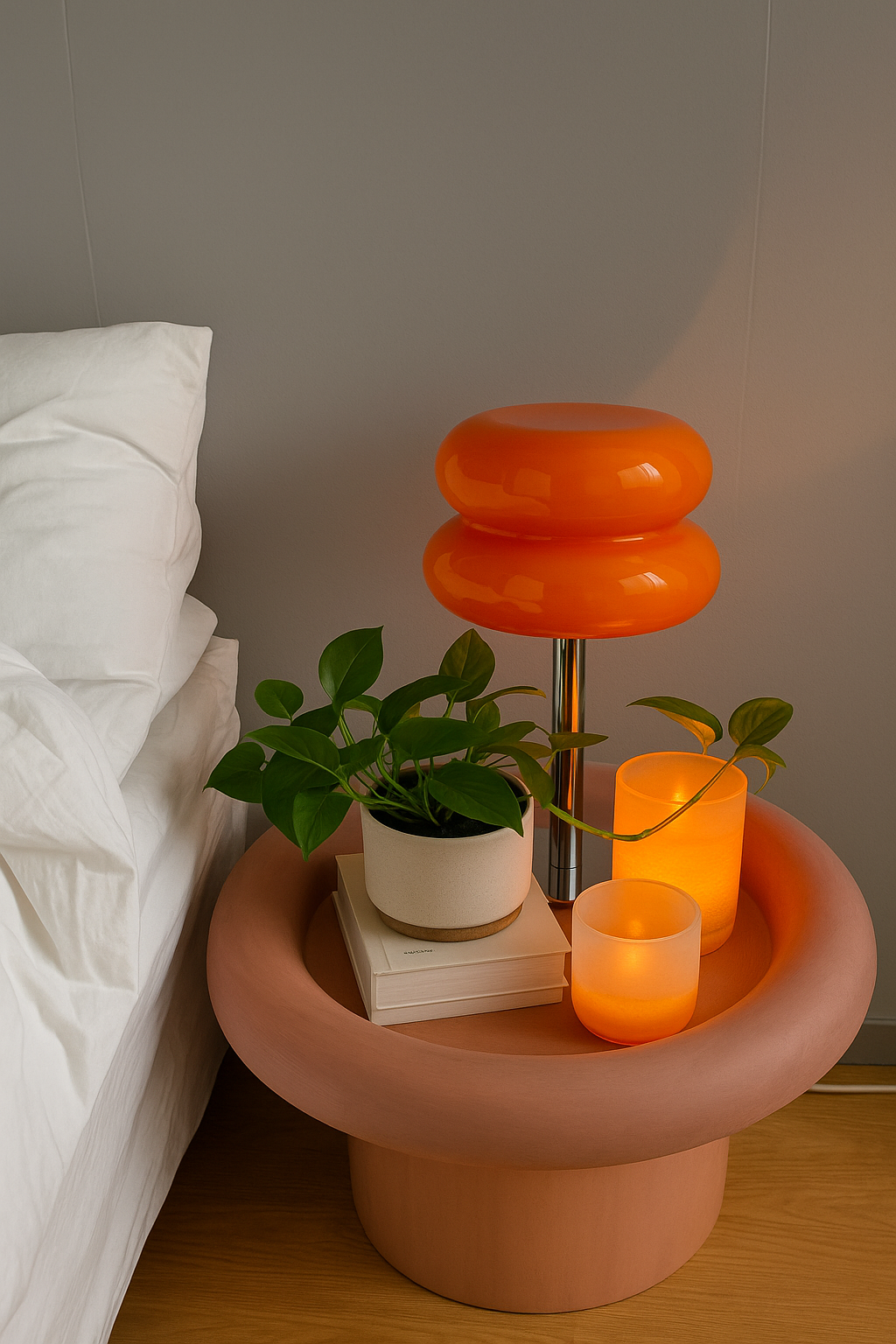 This lamp has a way of making any room feel more put together. The deep orange glass gives off a warm, modern vibe, and the simple chrome base keeps it sleek. Put it on a bedside table, a shelf, or next to the sofa. Wherever it goes, it adds that little aesthetic touch that makes the whole space feel styled.