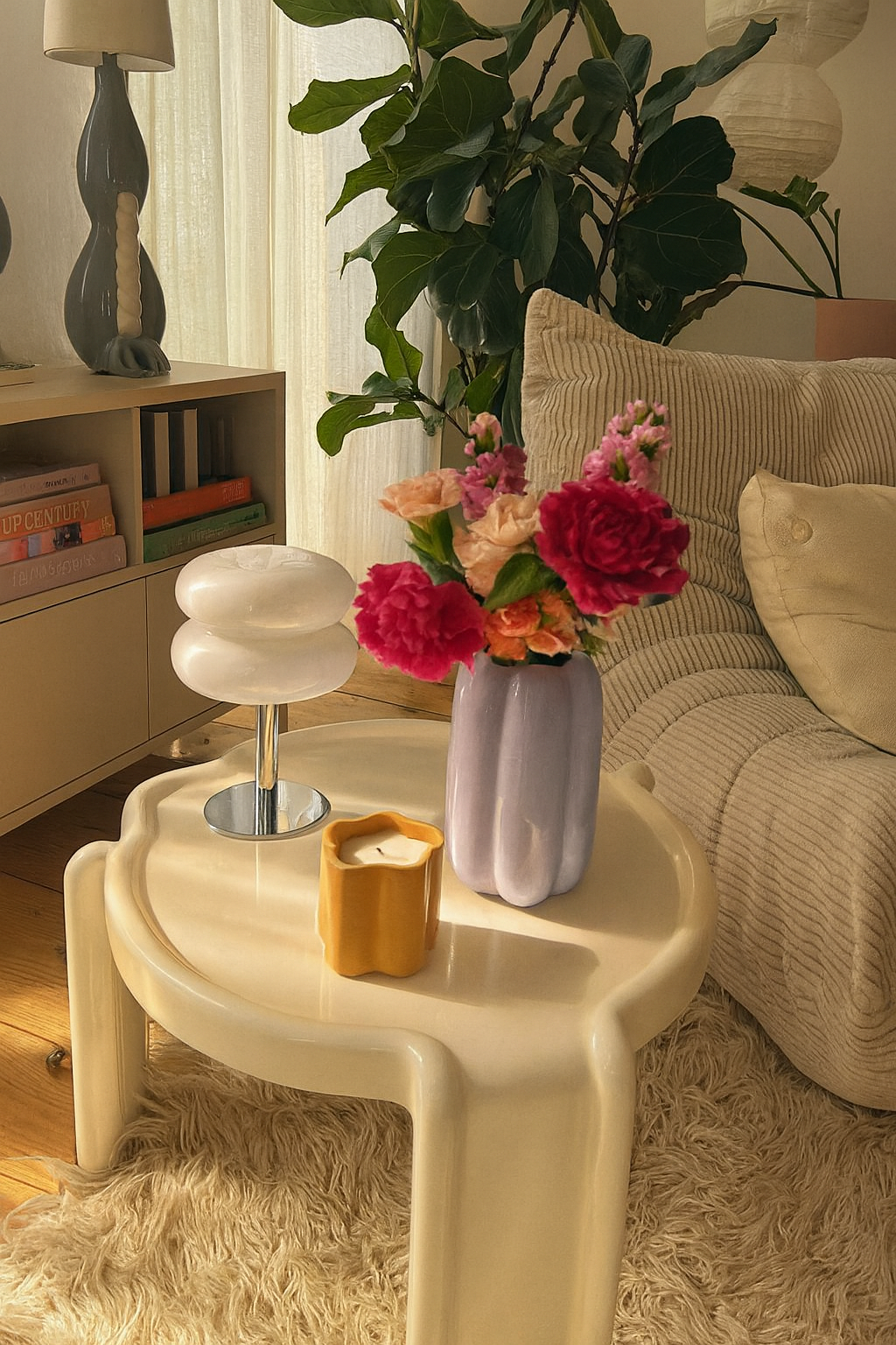 Simple and clean, this lamp makes any space feel lighter and more put together. The glossy white glass has a soft, modern look, and the chrome base keeps it sleek without trying too hard. Whether it’s on a nightstand, a side table, or next to the sofa, it adds that quiet aesthetic detail that makes the whole room feel calm and intentional.